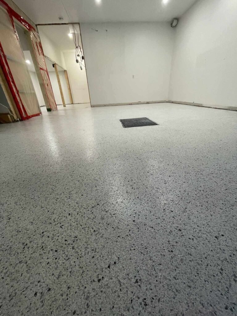 Le garage est souvent un espace négligé, mais c’est aussi l’endroit qui subit le plus de contraintes : huile, sel, calcium, pneus chauds, humidité et abrasion constante. Un bon revêtement époxy ou polyaspartique transforme votre plancher en surface propre, durable, facile à laver et résistante aux produits chimiques.