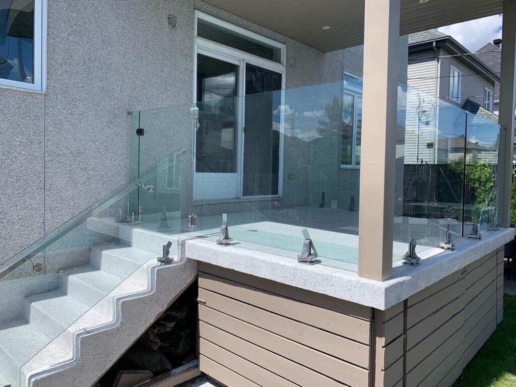 Ajoutez une touche d’élégance et de sécurité à vos aménagements extérieurs avec nos rampes en aluminium ou en verre installées sur mesure.